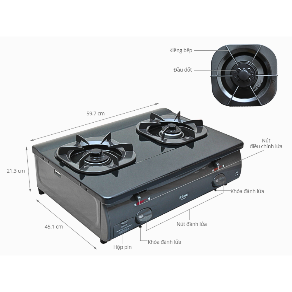 - Mặt bếp ga Rinnai làm bằng thép phủ men, dày bền.