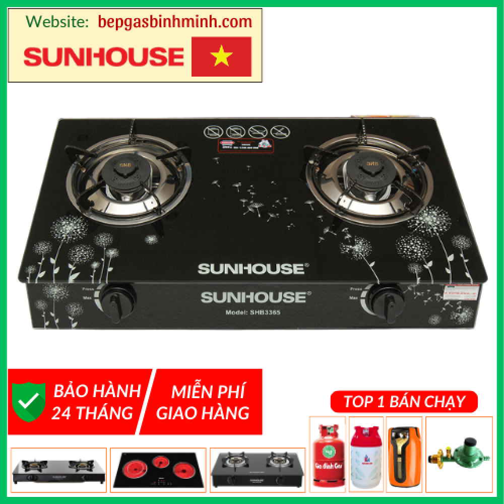 Bếp gas đôi Sunhouse SHB3365 hiện đại, tiện dụng, phù hợp với nhiều không gian bếp.