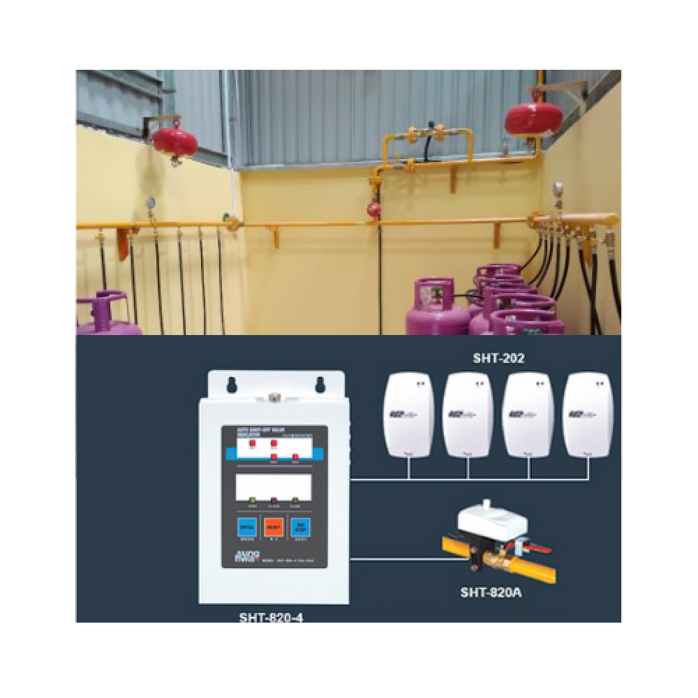 Hệ thống an toàn & PCCC: Đầu dò gas, van điện từ, tủ trung tâm, còi báo, đèn tín hiệu, công tắc khẩn cấp.